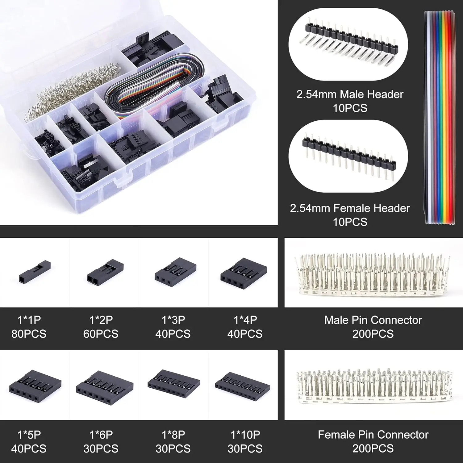 Komplett JST-XH Dupont connector-kit med 2.54mm pinnavstand – et uunnværlig sortiment for alle som jobber med elektronikk, Arduino, Raspberry Pi, 3D-printere eller andre hobbyprosjekter. Settet inneholder alt du trenger for å lage egendefinerte kabelkoblinger med profesjonelt resultat.